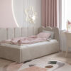 Tapicerowane łóżko daje ogromne możliwości aranżacyjne. Rodzice mogą wybrać kolor i rodzaj tkaniny, który najlepiej wpisuje się w wystrój pokoju. Dzięki temu łóżko staje się integralną częścią całej aranżacji.