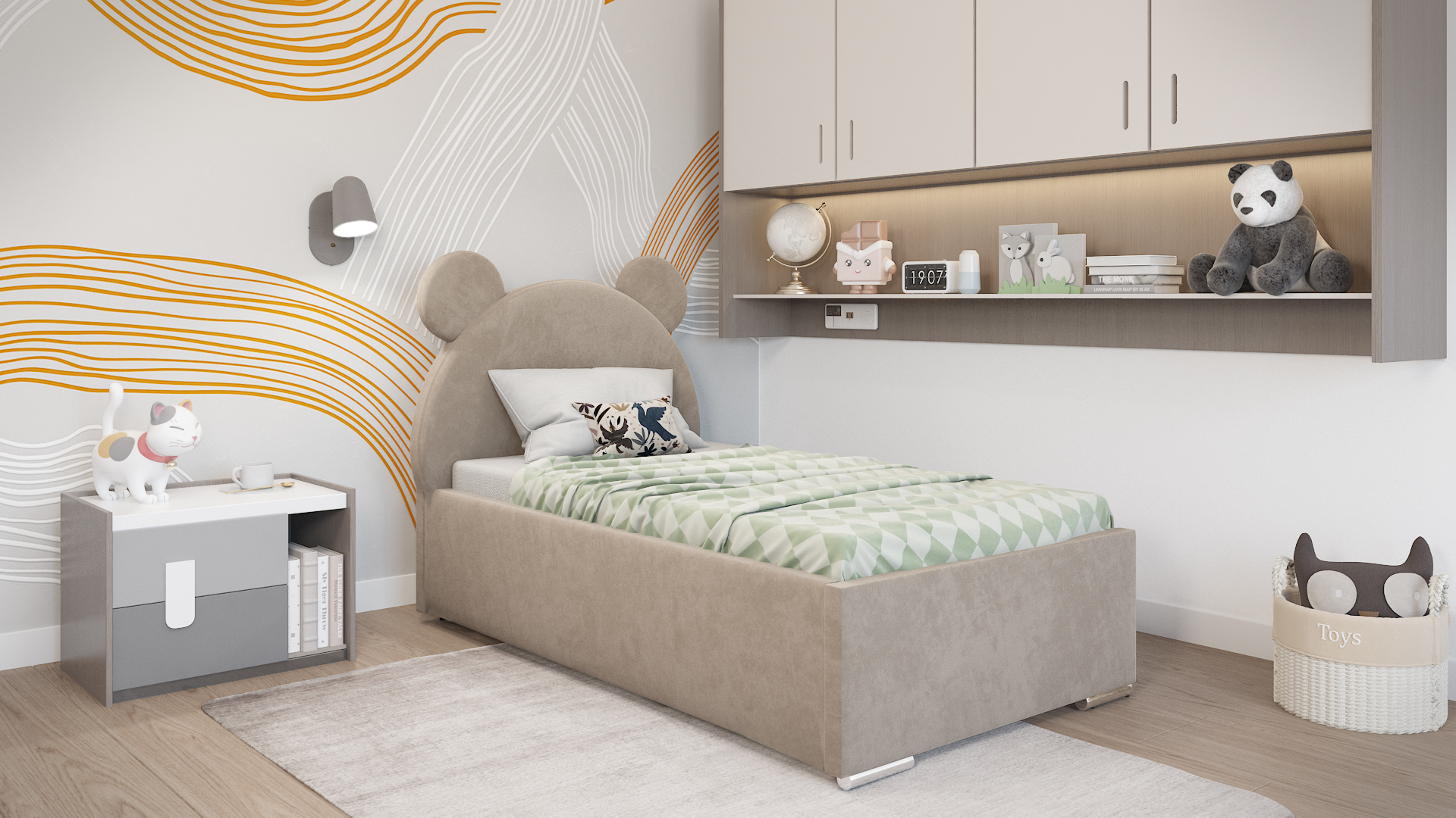 Najlepiej sprawdzą się łóżka tapicerowane jasnymi tkaninami strukturalnymi – w odcieniach beżu, kremu, szarości lub błękitu.
