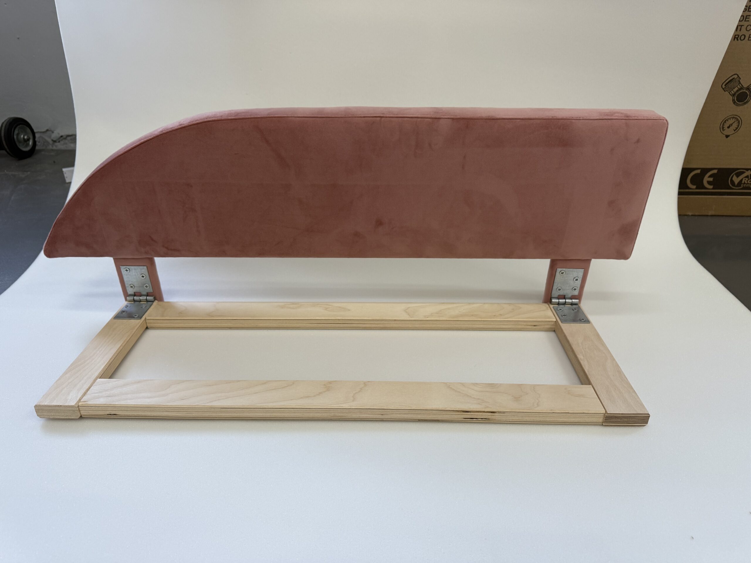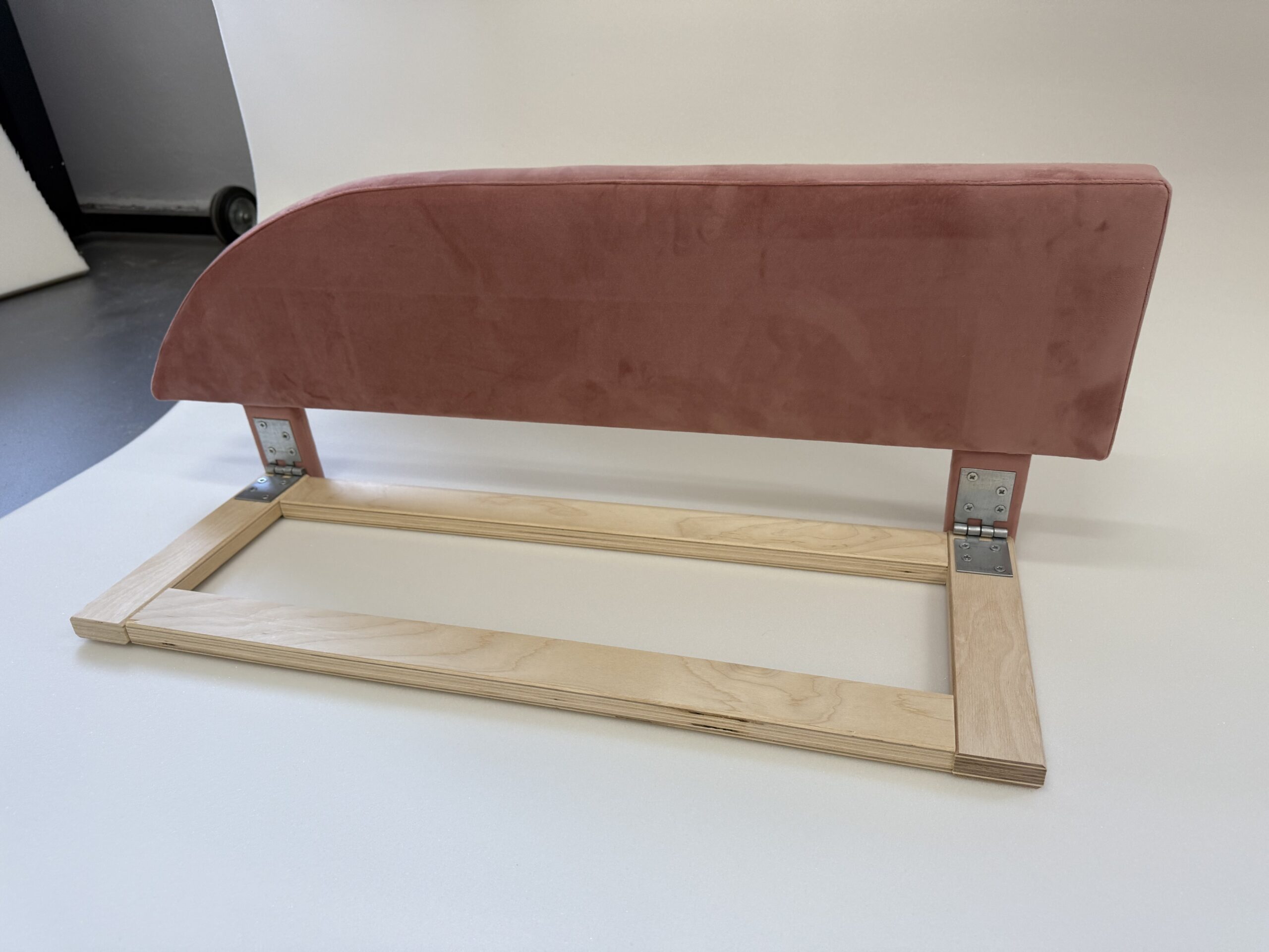 Barierka do łóżka tapicerowana w wybranym kolorze tkaniny to idealne rozwiązanie dla dzieci, które uczą się spać samodzielnie w swoich pierwszych łóżeczkach oraz lubiących kręcić się podczas snu.  Barierka jest wkładana pod materac i w każdej chwili można ją wyjąć. Dzięki ramce na zawiasach można ją złożyć, wówczas zajmuje mniej miejsca , żeby ją schować
