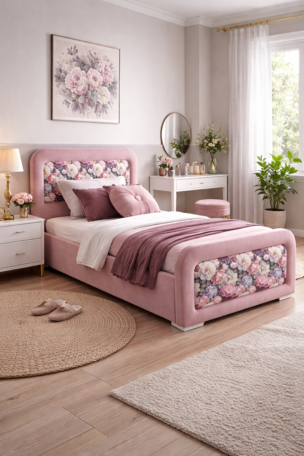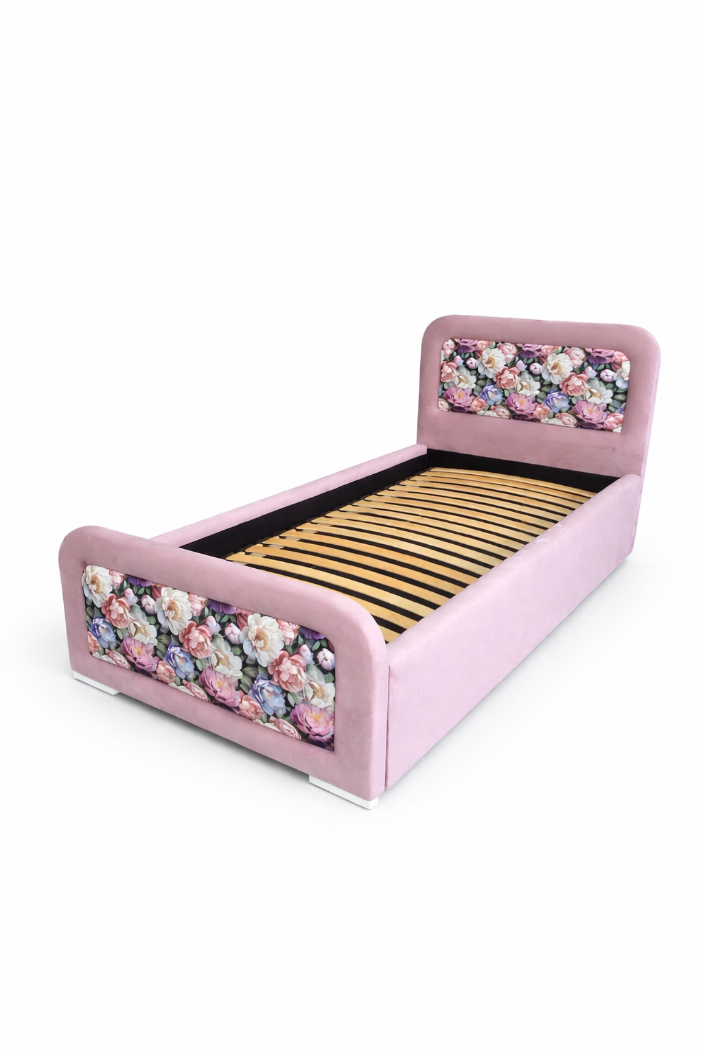 Tył łóżka nie jest obity tkaniną w której jest łóżko