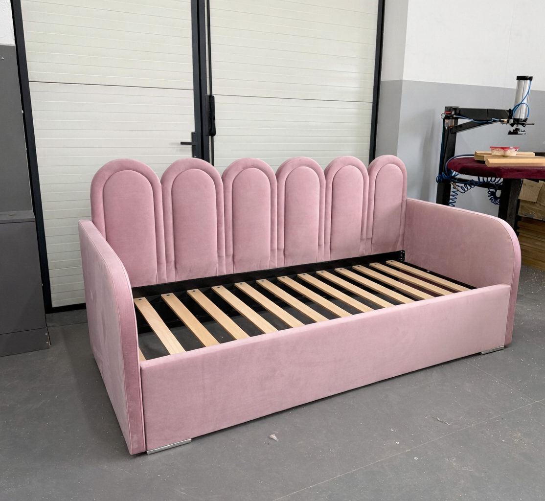 Łóżko tapicerowane dla dzieci w rozmiarze 200x90cm – model LUNA II – w tkaninie Magic Velvet 2269 (kolor różowy). Dostępny od ręki.