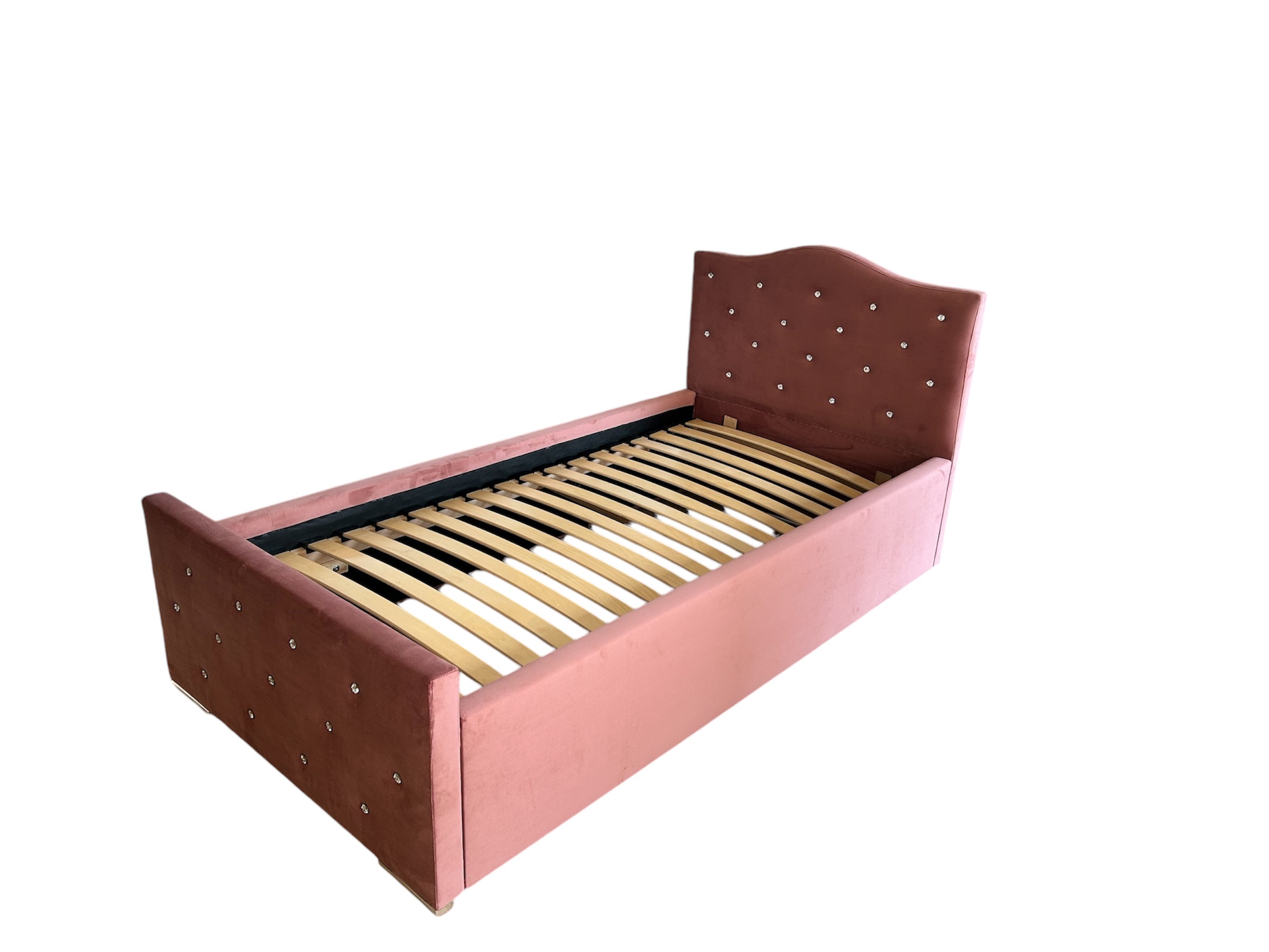 Łóżko Mela to wzór z ciekawym zagłówkiem zdobionym kryształkami. Idealne rozwiązanie do pokoju małej dziewczynki jak i nastolatki
