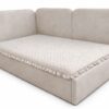Łóżko z tyłu nie jest tapicerowane tkaniną, w której jest obite łóżko.