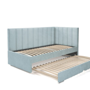 Tył łóżka nie jest obity tkaniną w której jest łóżko