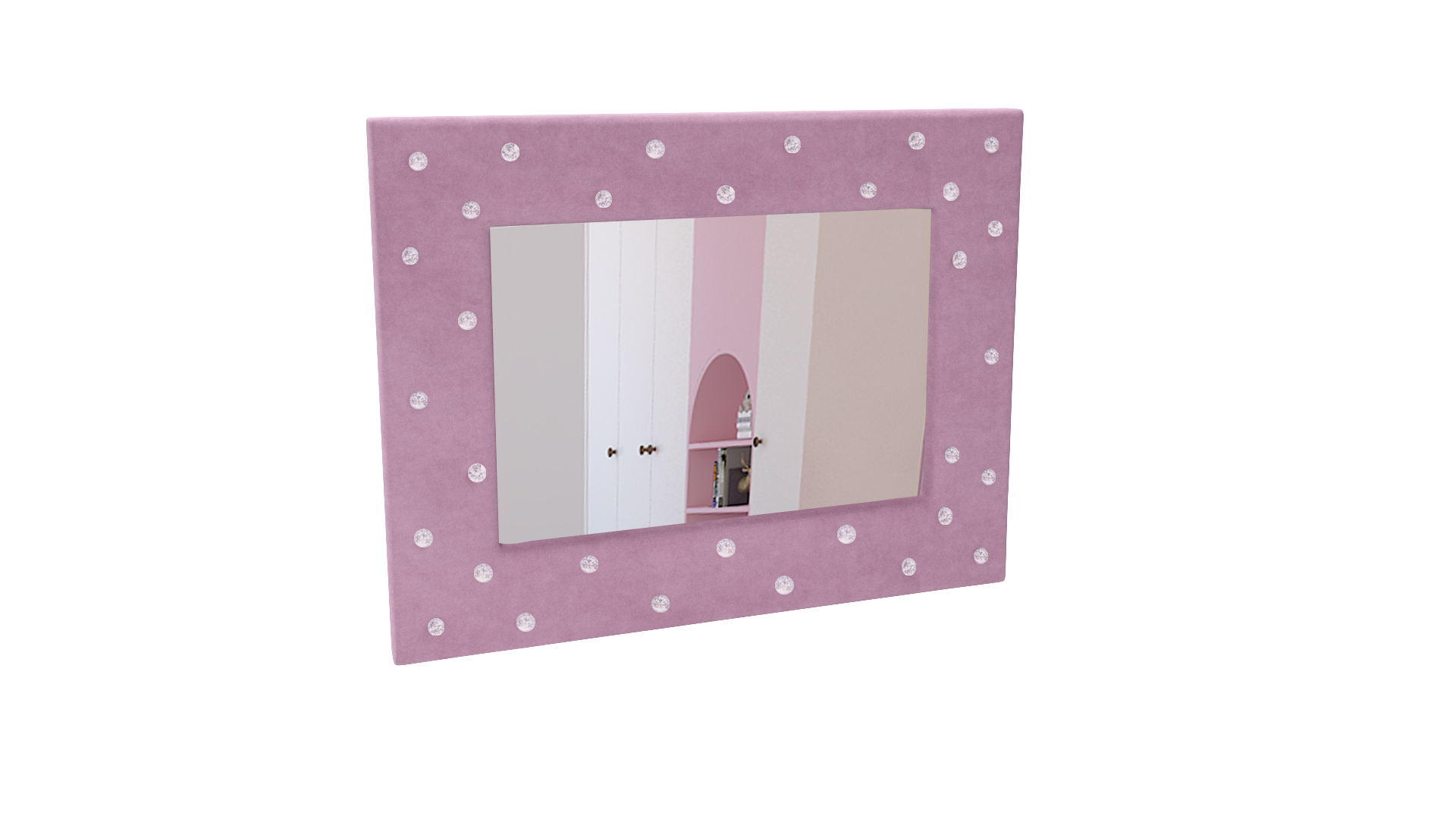 Tapicerowane lustro zdobione kryształkami to świetne rozwiązanie do różnych pomieszczeń między innymi do przedpokoju, pokoju dziecka sypialni czy salonu