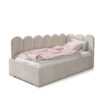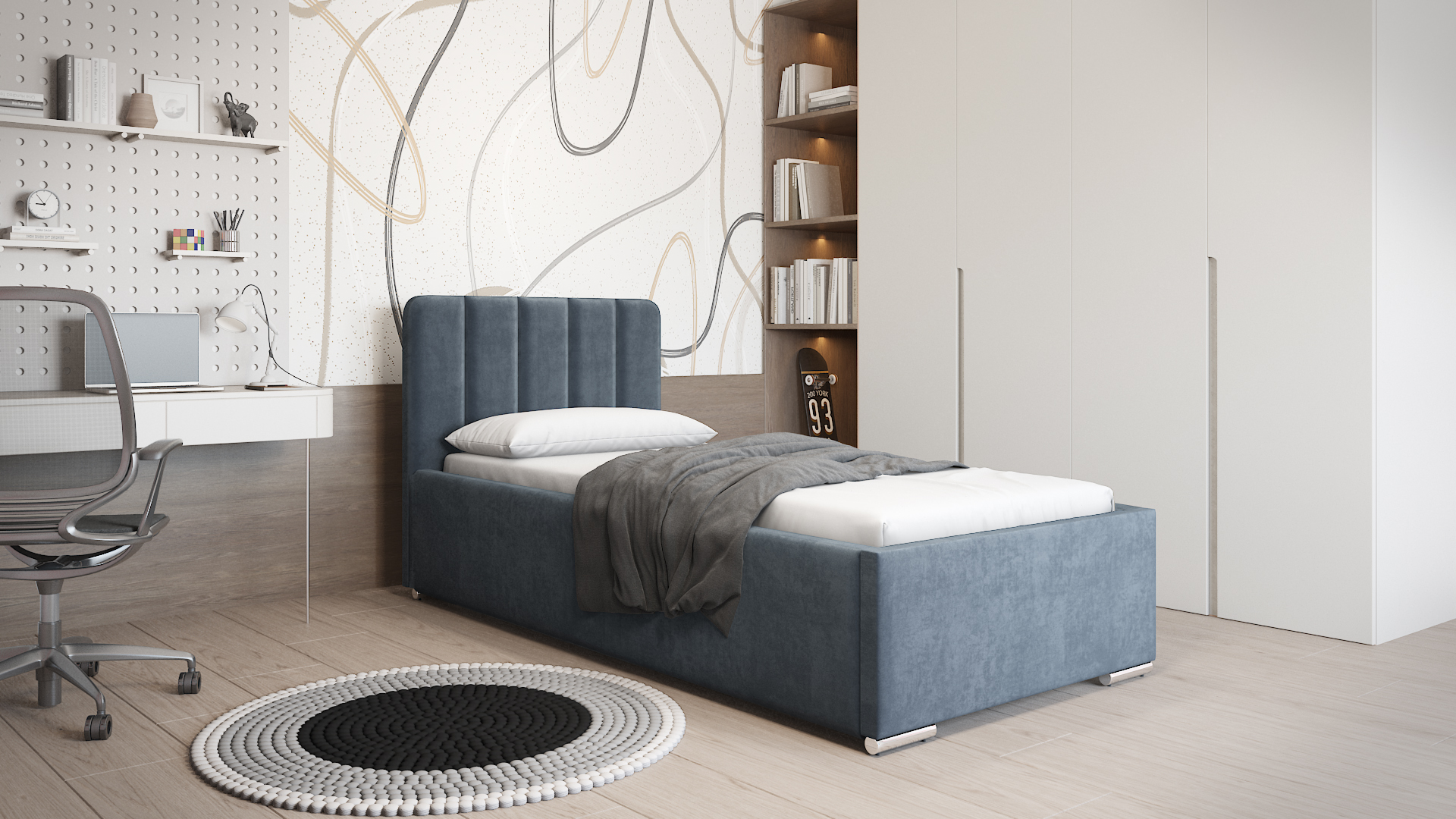 Tył łóżka nie jest obity tkaniną w której jest łóżko
