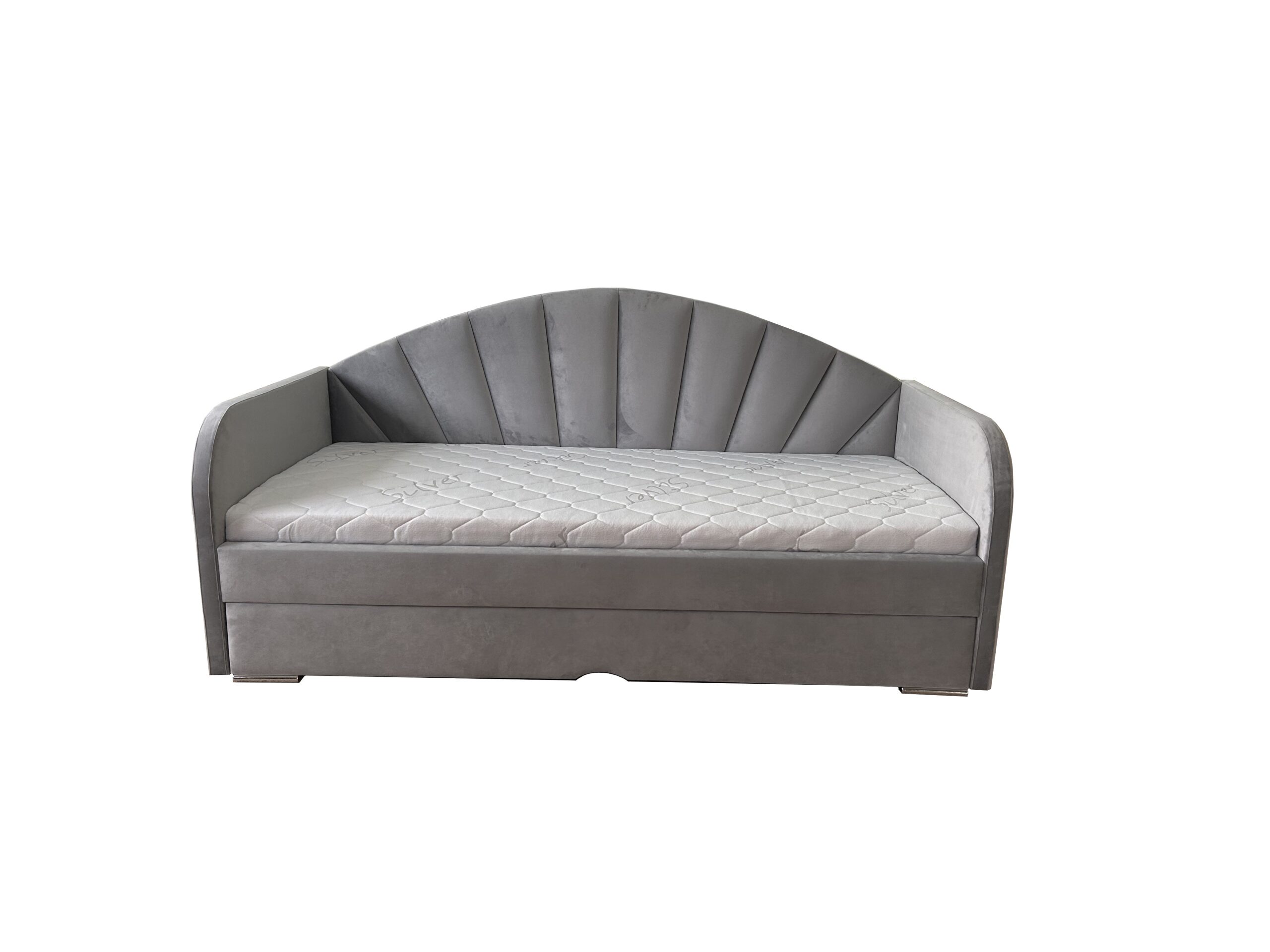 Tył łóżka nie jest obity tkaniną w której jest łóżko